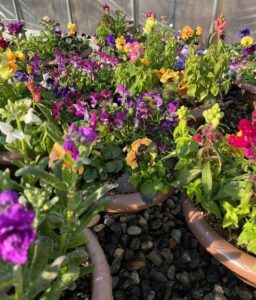寒い日が続きますが、なぎさ作業所のハウス内外ではパンジー・ビオラの花苗が元気に育っていますよ。
